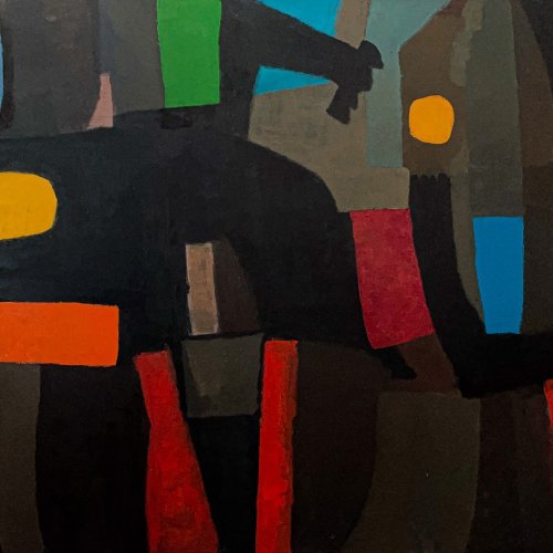 The name of the series – blue notes – evokes this duality with its airy and free musical connotation contrasted by its literal confinement of mainly blue words within the frame. The artist stuck to his distinctive palette made up mostly of the primaries. Notes are crafted in meticulously hand-painted blue characters intermixed with spatially whimsical individual primary-coloured letters.